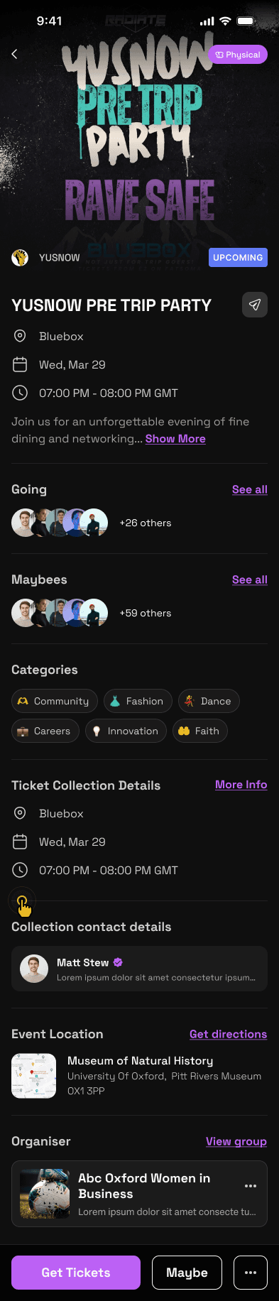 Physical tickets (vs digital): Selling freshers wristbands or paper tickets to club nights? Now you can collect payment via Youni, through apple pay/card etc, see exactly who’s bought what AND your attendees will be given all the instructions to pick up their tickets, as well as your ticket reps Whatsapp in case they needa chat with y-all. Physical ticket collection, made simple.